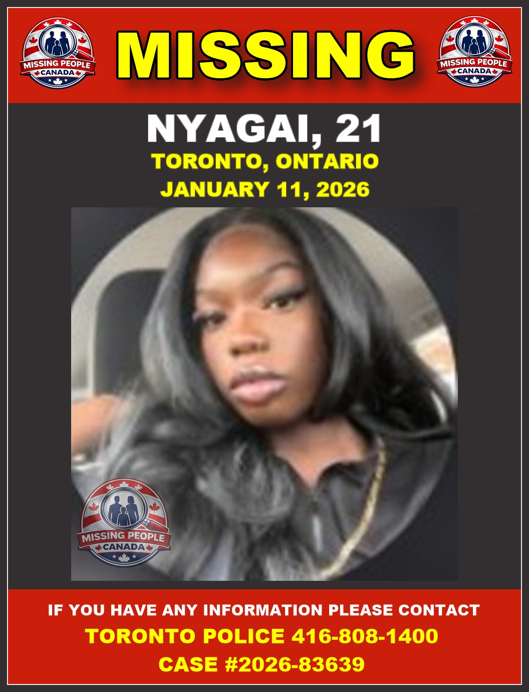 🚨 Missing person in Toronto, Ontario – Nyagai, 21 – Last Seen January 11 2026