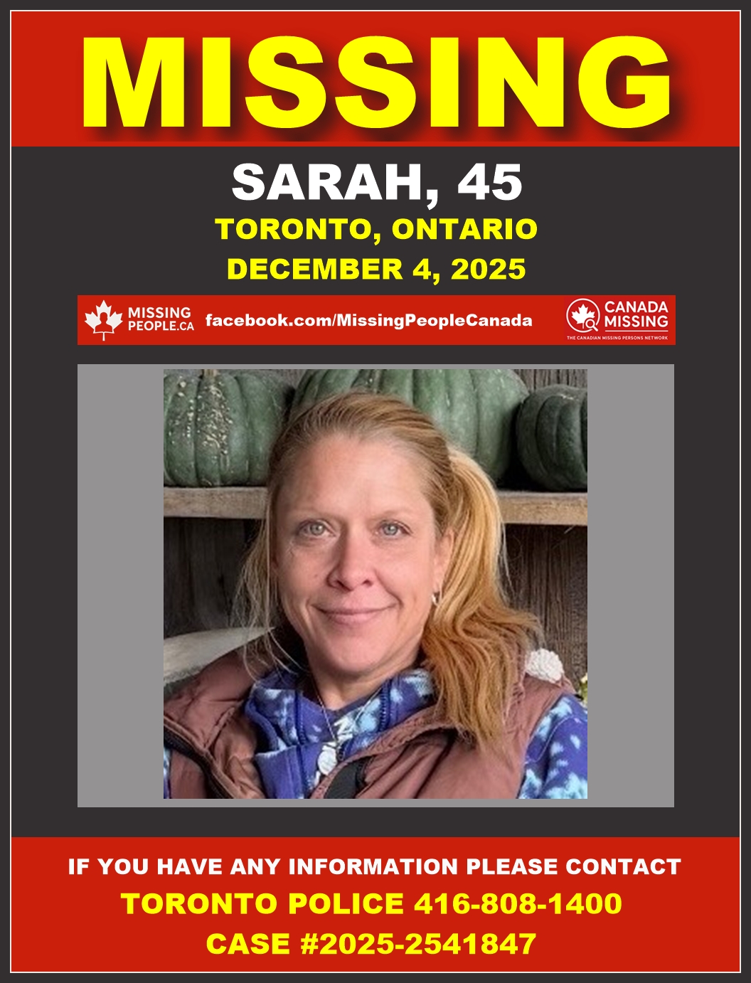 🚨 Missing Person in Toronto, Ontario – Sarah, 45 – Last Seen December 4 2025