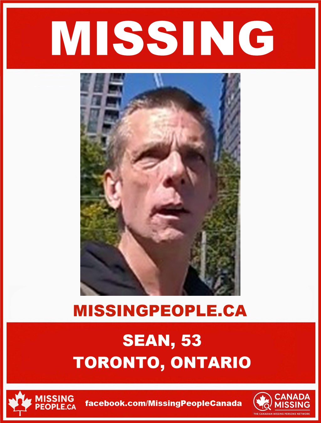 The Toronto Police Service is requesting the public’s assistance locating Sean, 53, who has been reported missing.