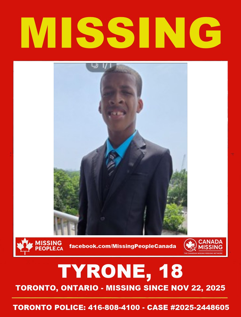 Missing Person in Toronto, Ontario – Tyrone, 18 – Last Seen November 22, 2025