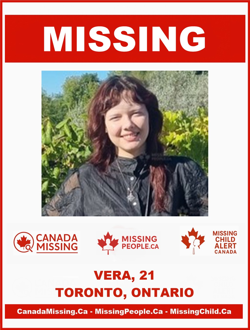 The Toronto Police Service is requesting the public’s assistance in locating Vera, 21, who has been reported missing.