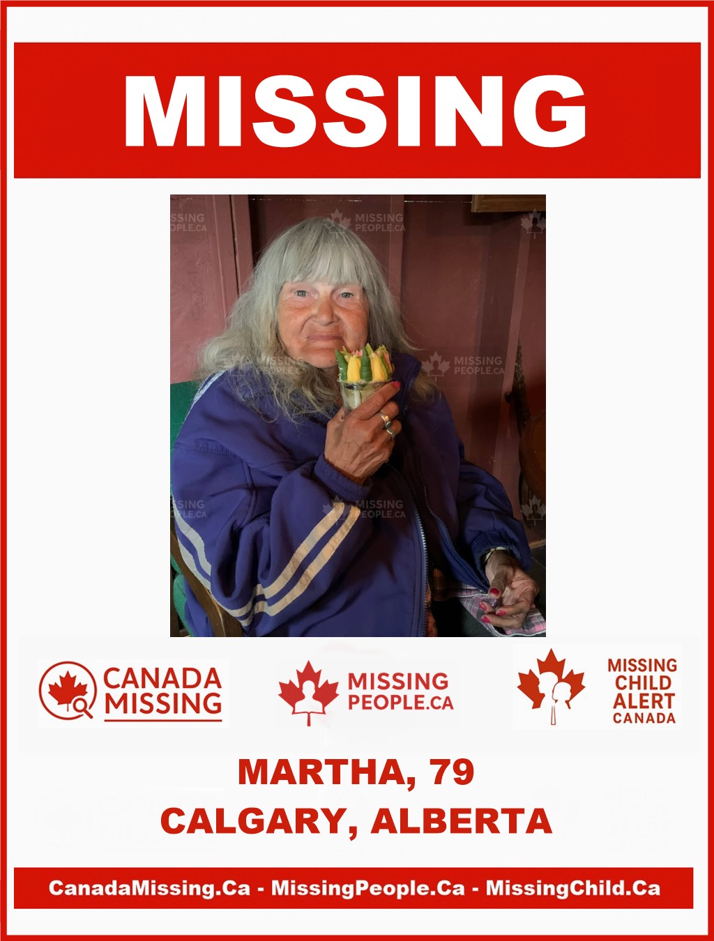 Anyone with information on Martha’s whereabouts is asked to contact the Calgary Police Service by calling 403-266-1234.