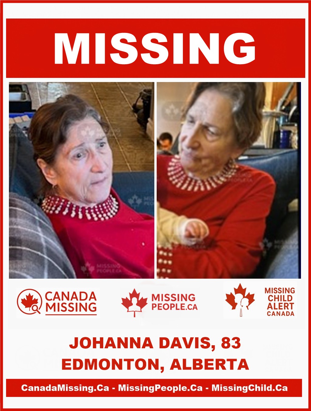 The Edmonton Police Service (EPS) is requesting the public’s assistance in locating 83-year-old Johanna Davis, who has been reported missing.