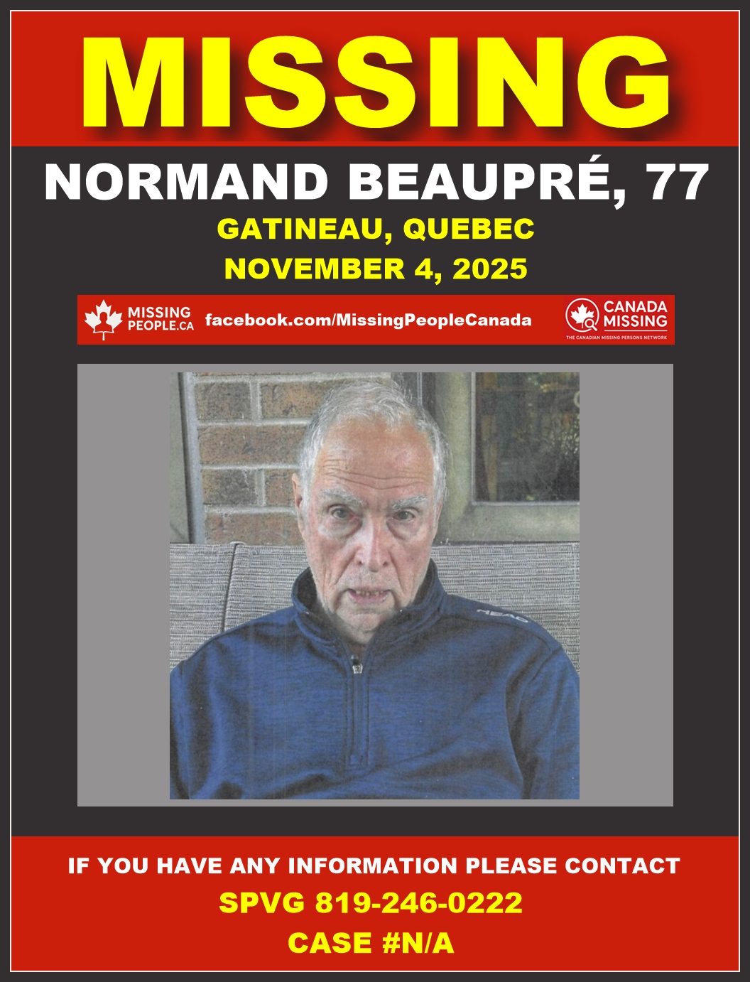 🚨 Missing Senior in Gatineau, Quebec – Normand Beaupré, 77 – Last Seen November 4, 2025
