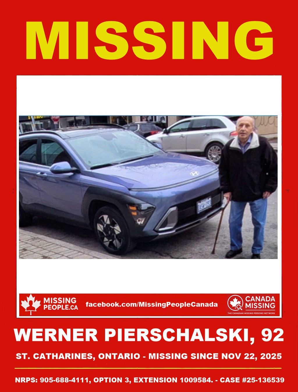 Missing Senior in St. Catharines, Ontario – Werner Pierschalski, 92 – Last Seen November 22, 2025