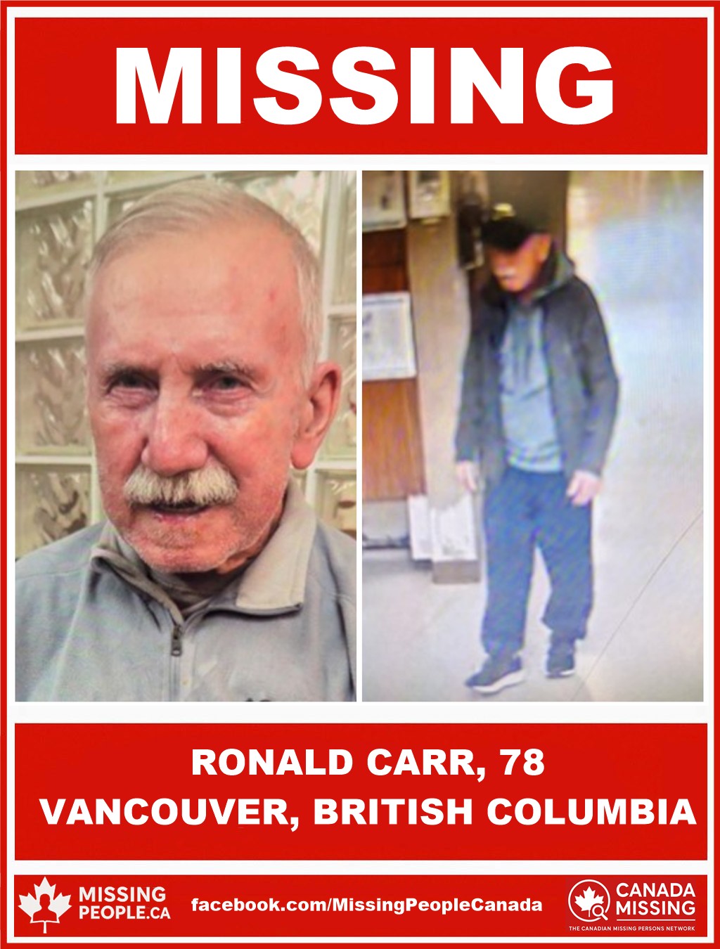 The Vancouver Police Department is asking for the public’s assistance in locating 78-year-old Ronald Carr, who went missing earlier today from the Victoria-Fraserview neighbourhood in Vancouver.
