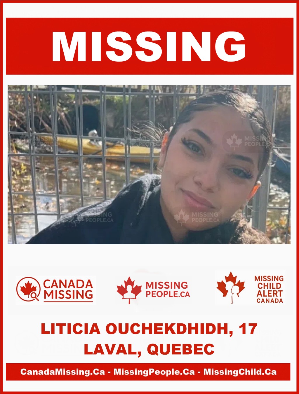 The Service de police de Laval (SPL) is requesting the public’s assistance in locating Liticia Ouchekdhidh, a 17-year-old teenager who has been missing since September 24, 2025.