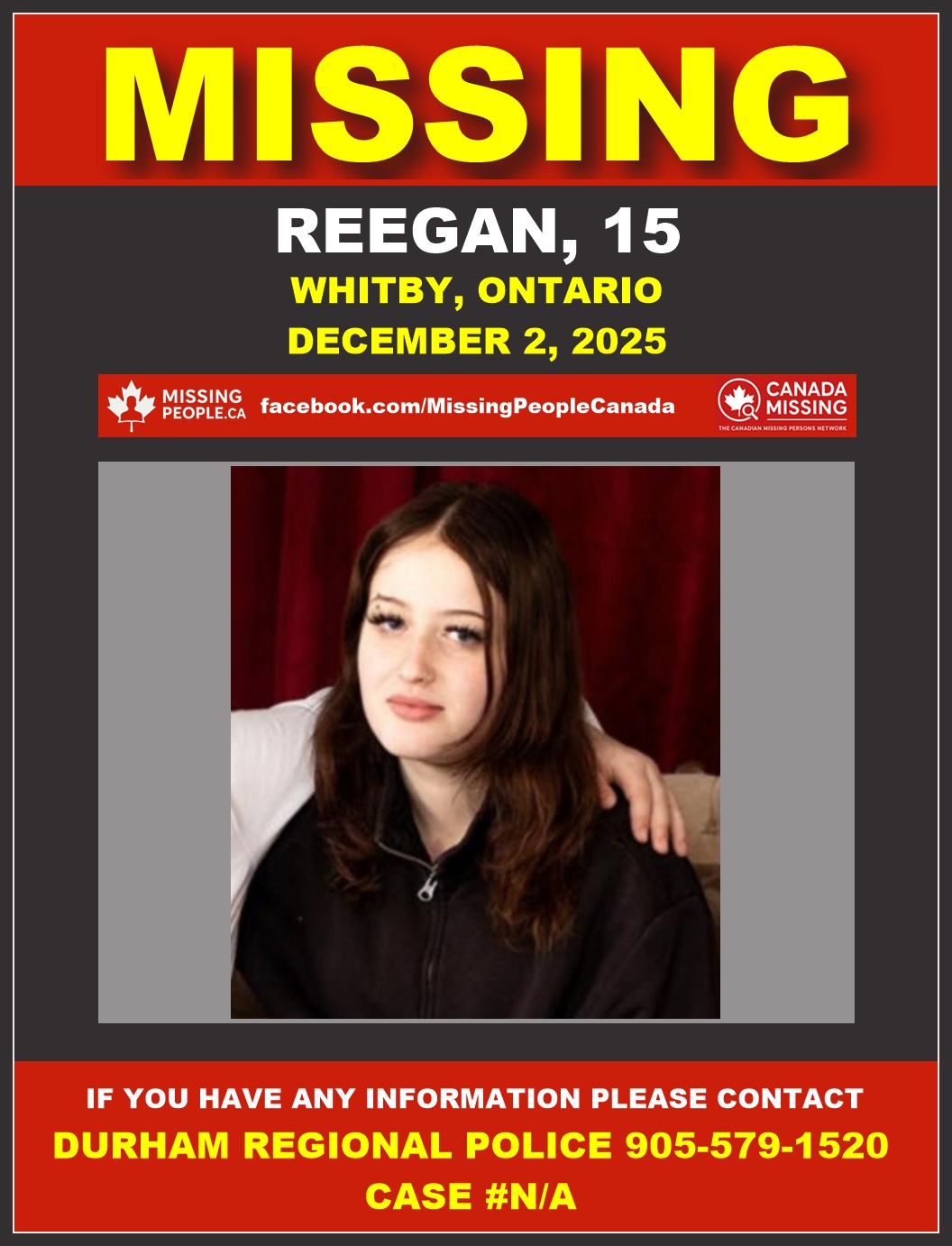 🚨 Missing Female Teen in Whitby, Ontario – Reegan, 15 – Last Seen December 2 2025