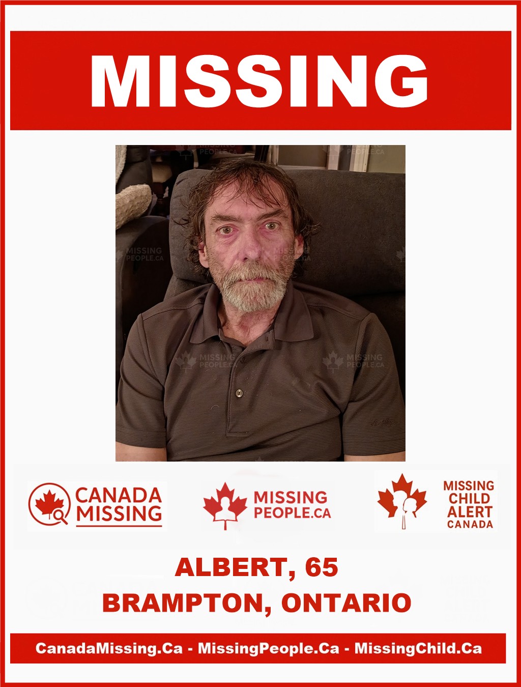 Anyone with information about Albert’s whereabouts is asked to contact the Peel Regional Police or their local police service immediately.