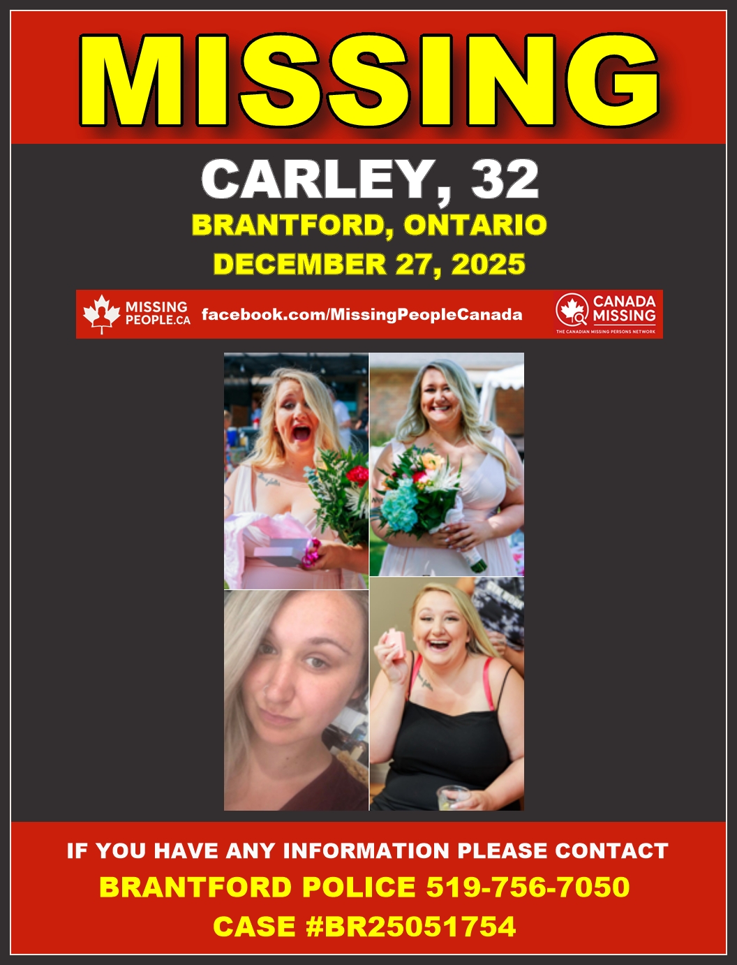 🚨 Missing woman in Brantford, Ontario – Carley, 32 – Last Seen December 27 2025