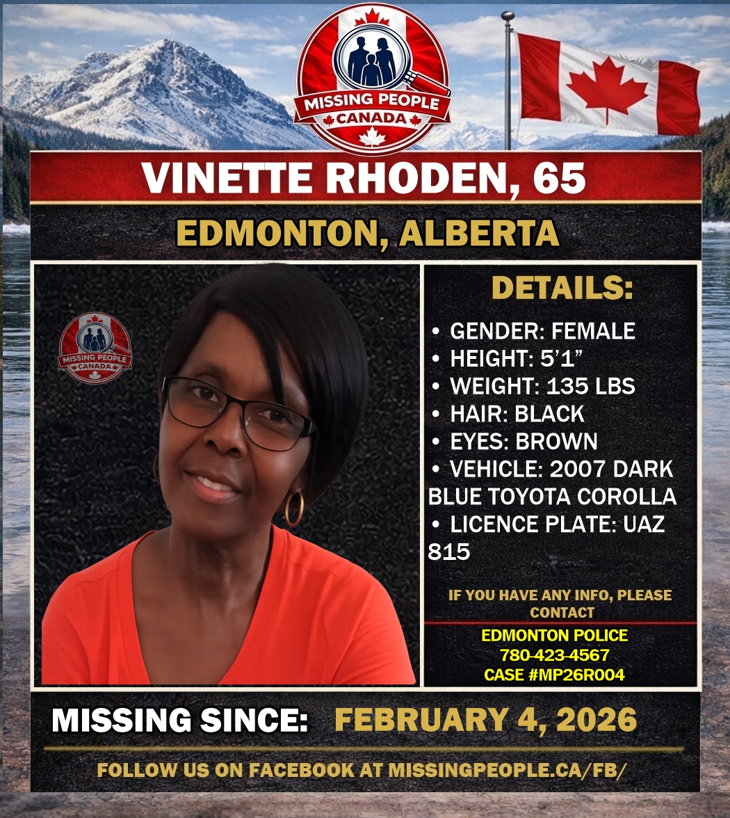 🚨 Missing Woman in Edmonton, Alberta – Vinette Rhoden, 65 – Last Seen February 4, 2026
