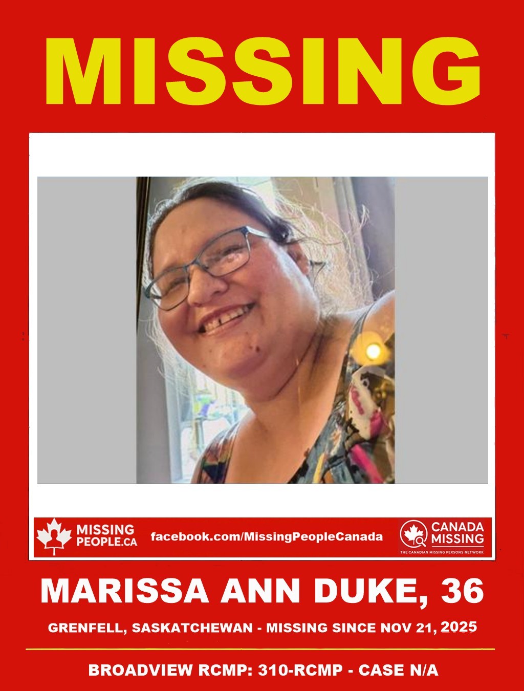 The Broadview RCMP is seeking the public’s assistance in locating Marissa Ann Duke, a 36-year-old woman from Grenfell.