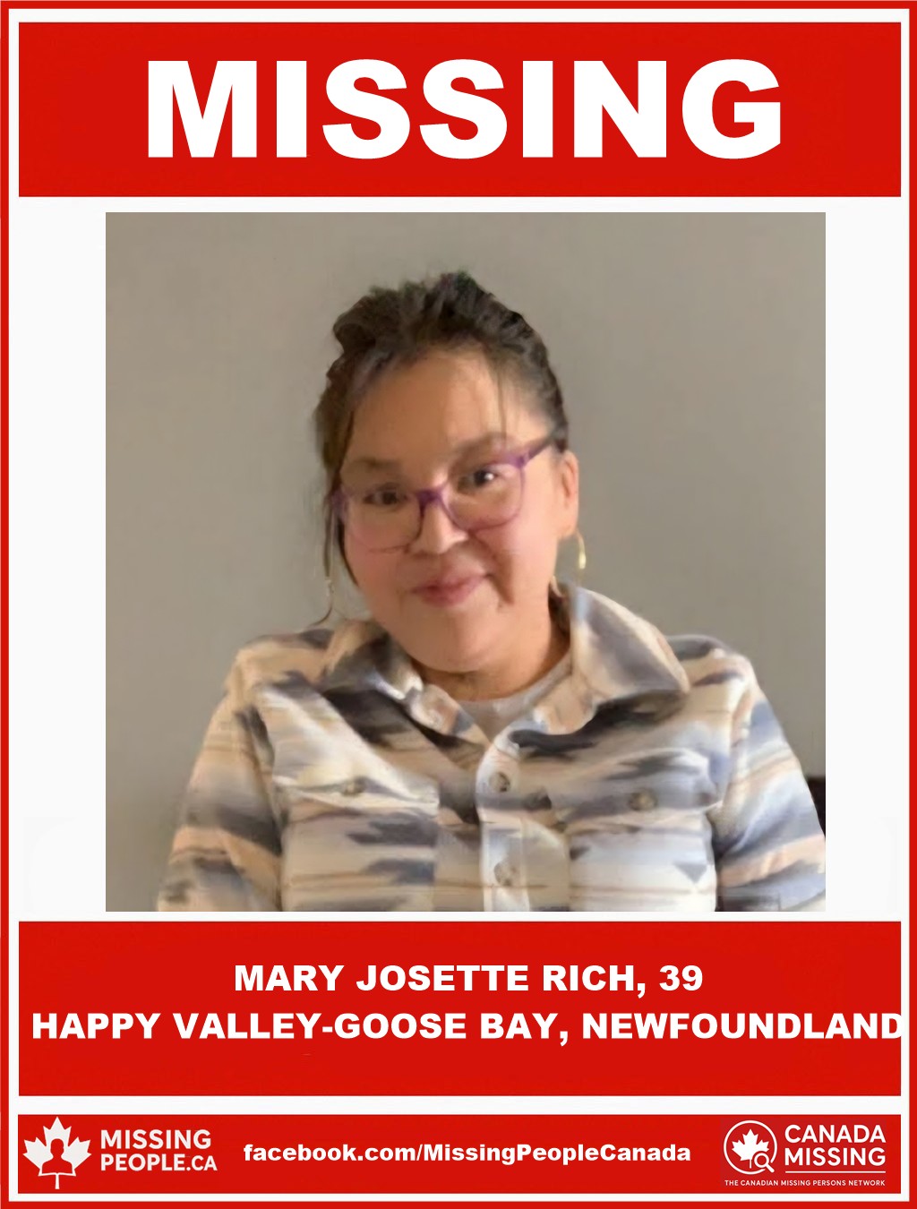 The Royal Canadian Mounted Police in Happy Valley-Goose Bay are asking for the public’s assistance in locating 39-year-old Mary Josette Rich.