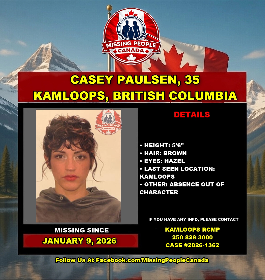Anyone who has seen Casey Paulsen or has information on her whereabouts is asked to contact Kamloops RCMP at 250-828-3000 and mention file 2026-1362.