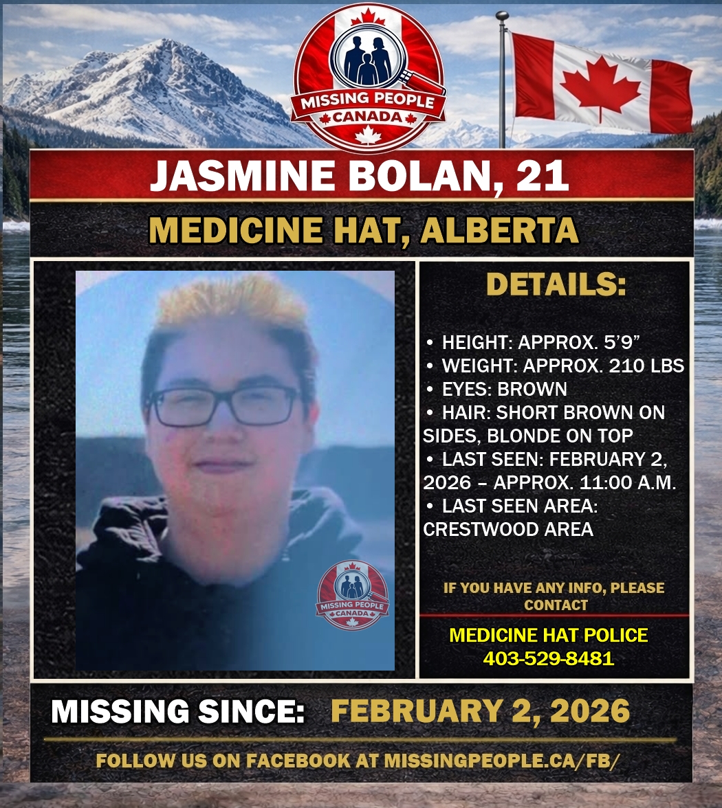 🚨 Missing Woman in Medicine Hat, Alberta – Jasmine Bolan, 21 – Last Seen February 2, 2026