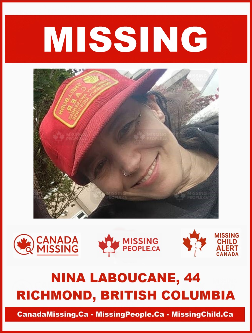 The Richmond RCMP is seeking the public’s assistance in locating 44-year-old Nina Laboucane, who was last seen on Sunday, October 5, 2025, and was reported missing on Friday, October 10, 2025.