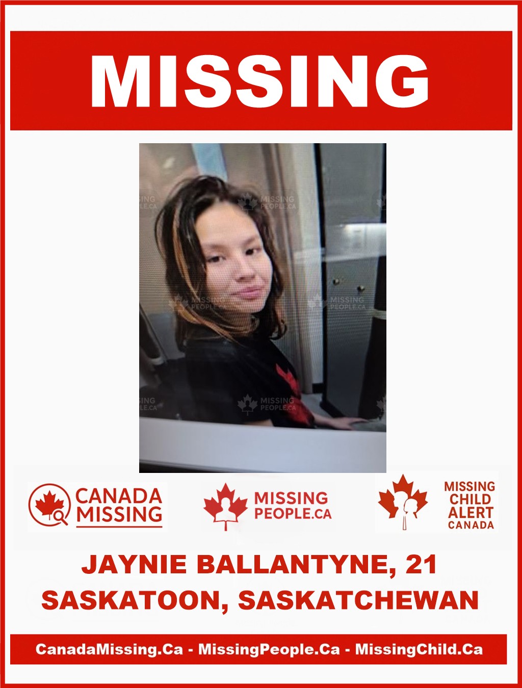 Anyone with information regarding the whereabouts of Jaynie Ballantyne is asked to contact the Saskatoon Police Service at 306-975-8300 or, in an emergency, call 9-1-1.