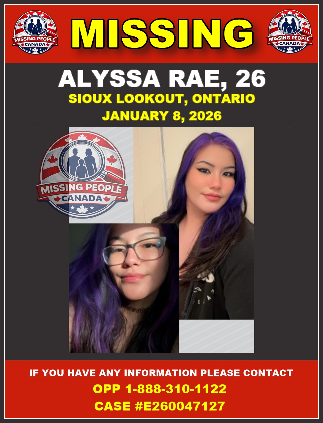 - Last Seen: Sioux Lookout, January 8, 2026