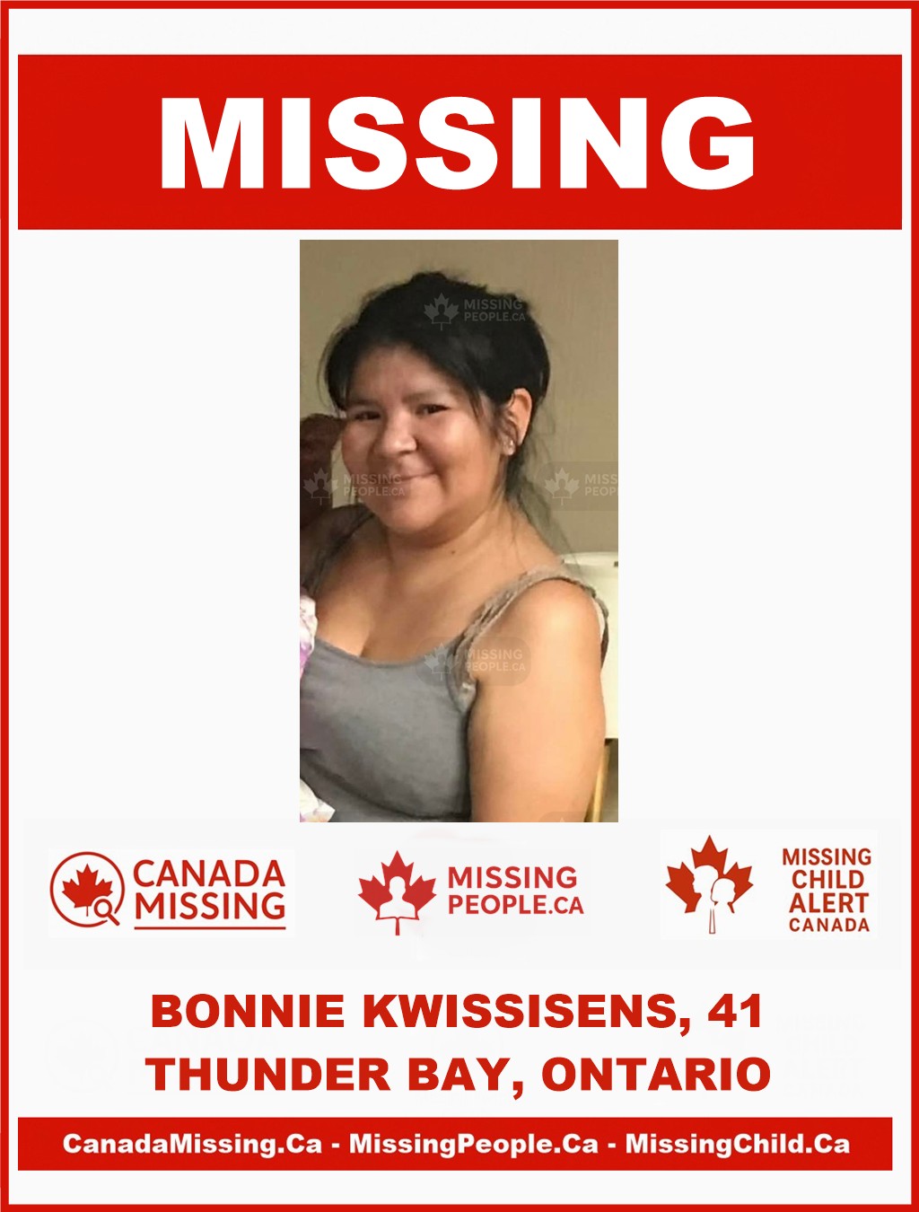 The Thunder Bay Police Service is requesting the public’s assistance in locating Bonnie Kwissisens, 41.