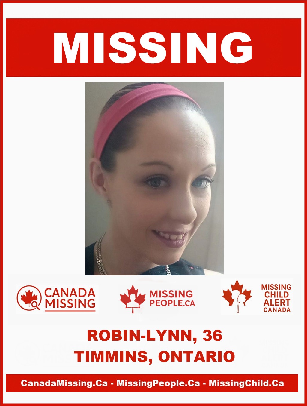 The Timmins Police Service is requesting the publicβs assistance in locating Robin-Lynn, a 36-year-old woman who has been reported missing. Police and family are concerned for her well-being and are asking anyone with information to come forward.