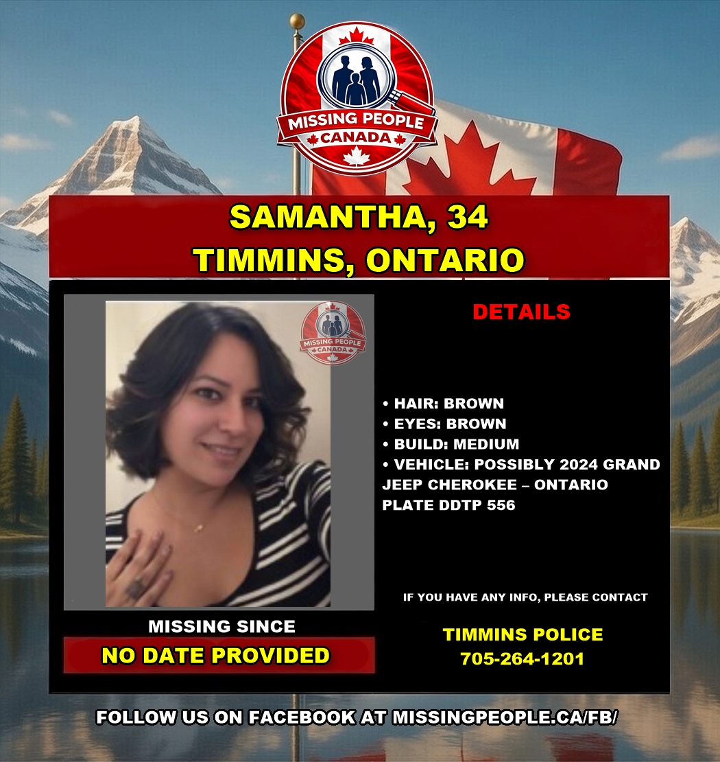 🚨 Missing woman in Timmins, Ontario – Samantha, 34
