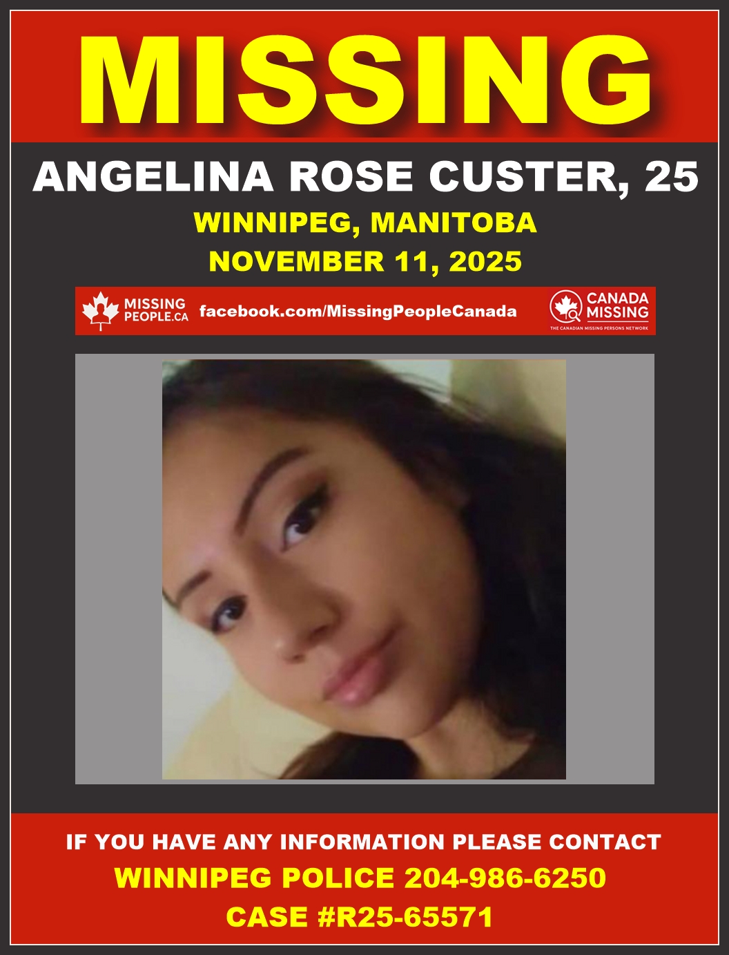 The Winnipeg Police Service Missing Persons Unit is requesting the public’s assistance in locating Angelina Rose Custer, a 25-year-old Indigenous female from Winnipeg. Reference #R25-65571.