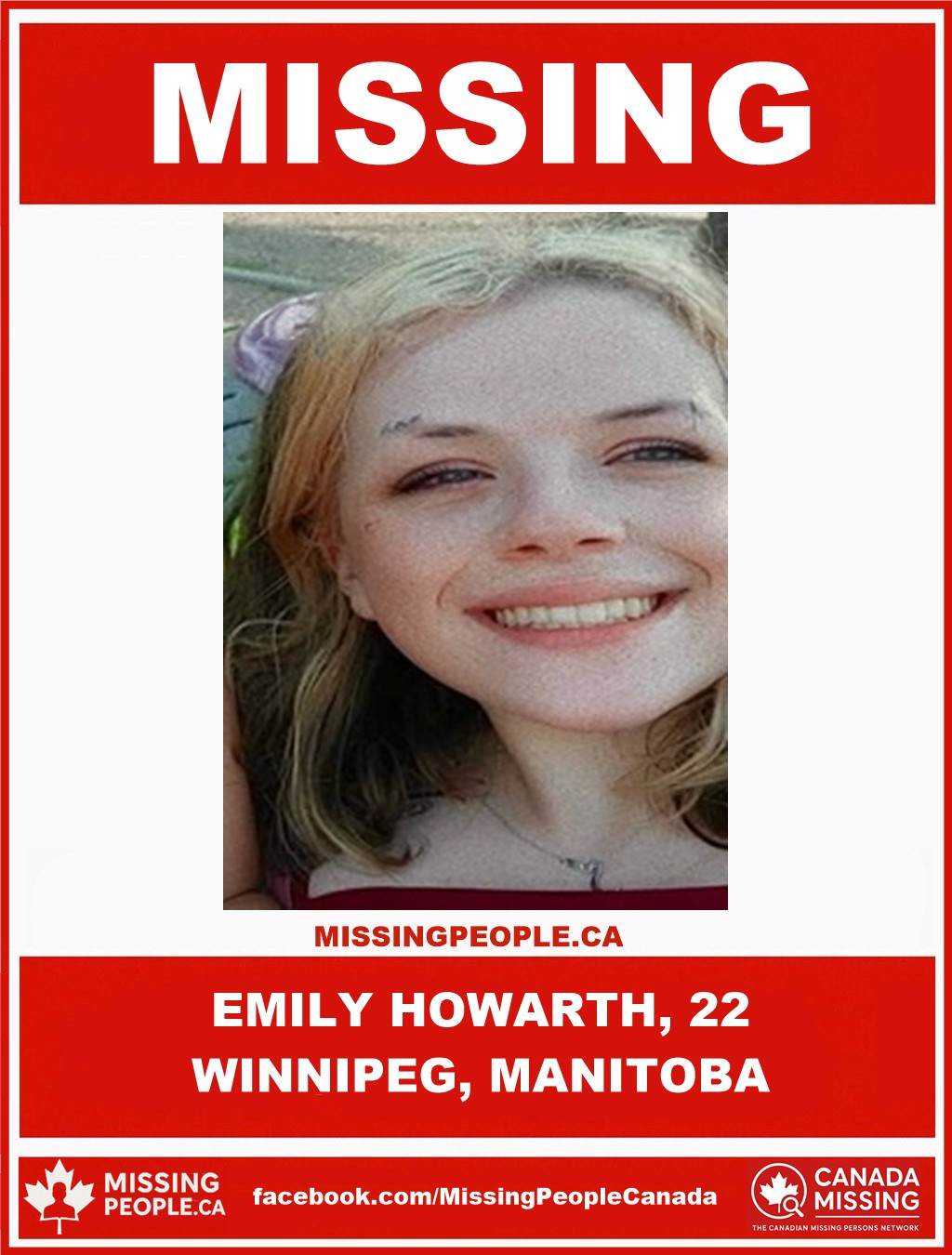 The Winnipeg Police Service is requesting the public’s assistance in locating Emily Howarth, a 22-year-old woman from Winnipeg.
