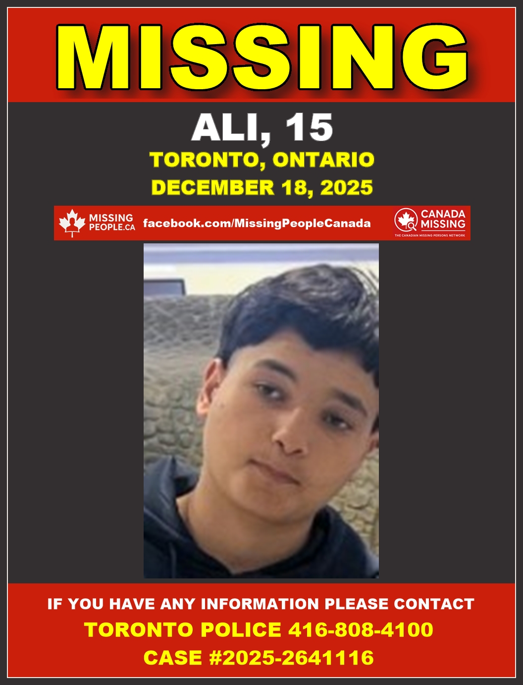 🚨 Missing Youth in Toronto, Ontario – Ali, 15 – Last Seen December 18 2025