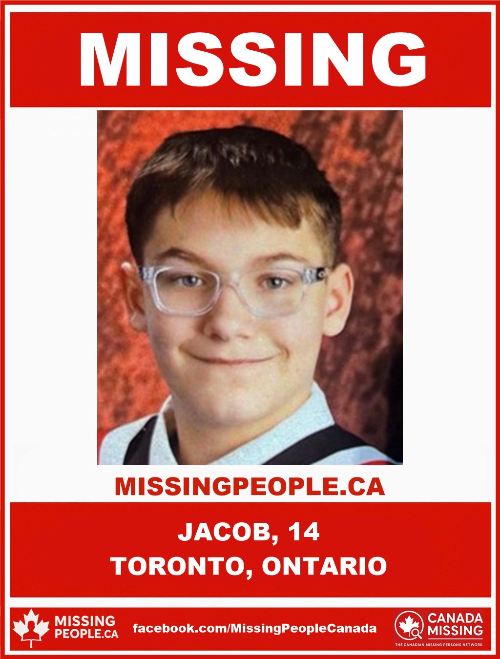 The Toronto Police Service is requesting the public’s assistance in locating Jacob, 14, who has been reported missing.