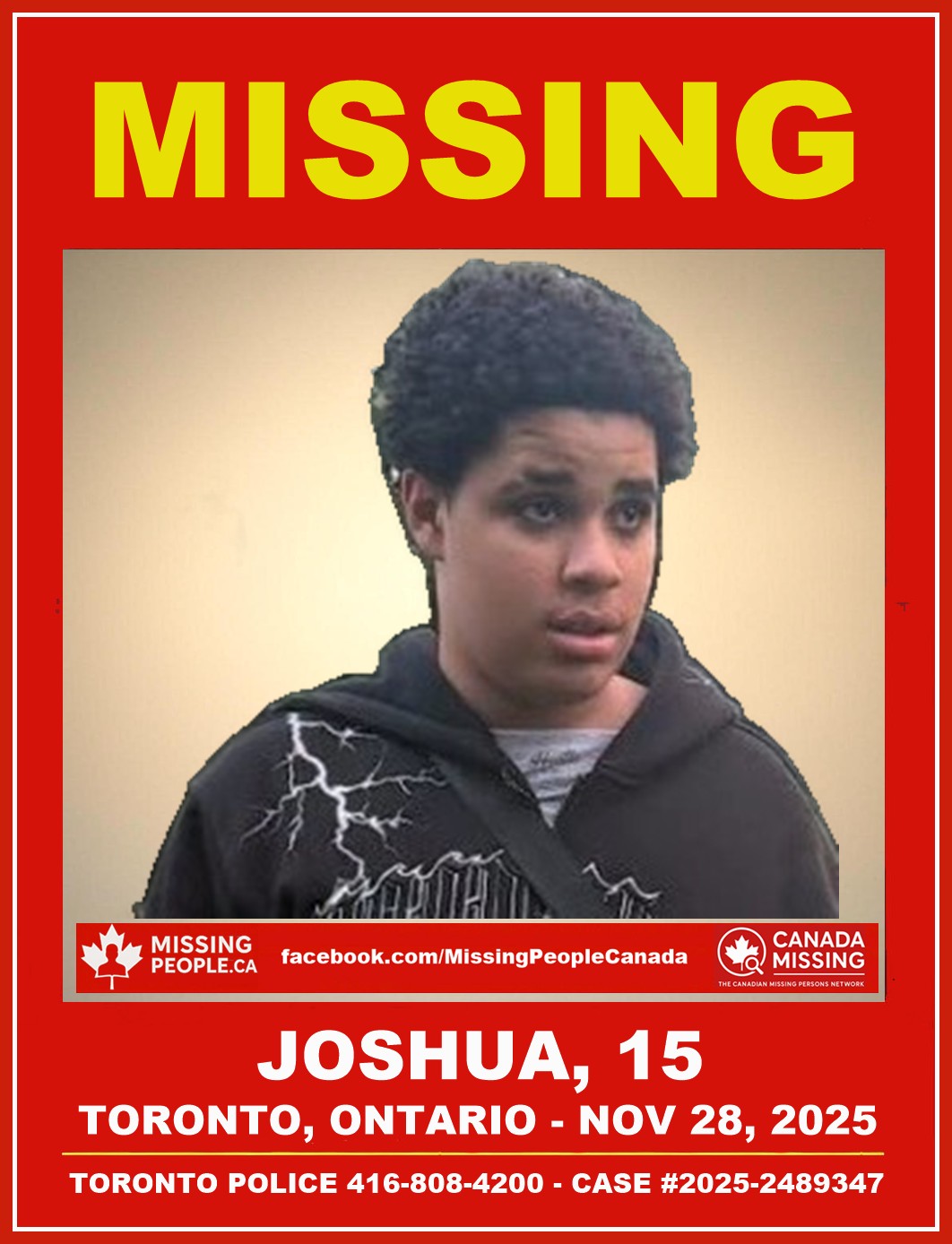 Missing Youth in Toronto, Ontario – Joshua, 15 – Last Seen November 28, 2025