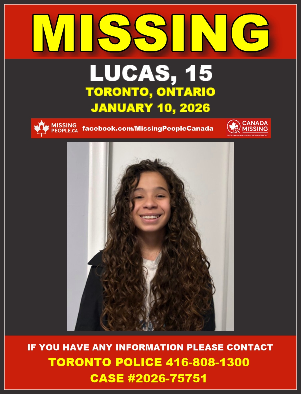 🚨 Missing youth in Toronto, Ontario – Lucas, 15 – Last Seen January 10 2026