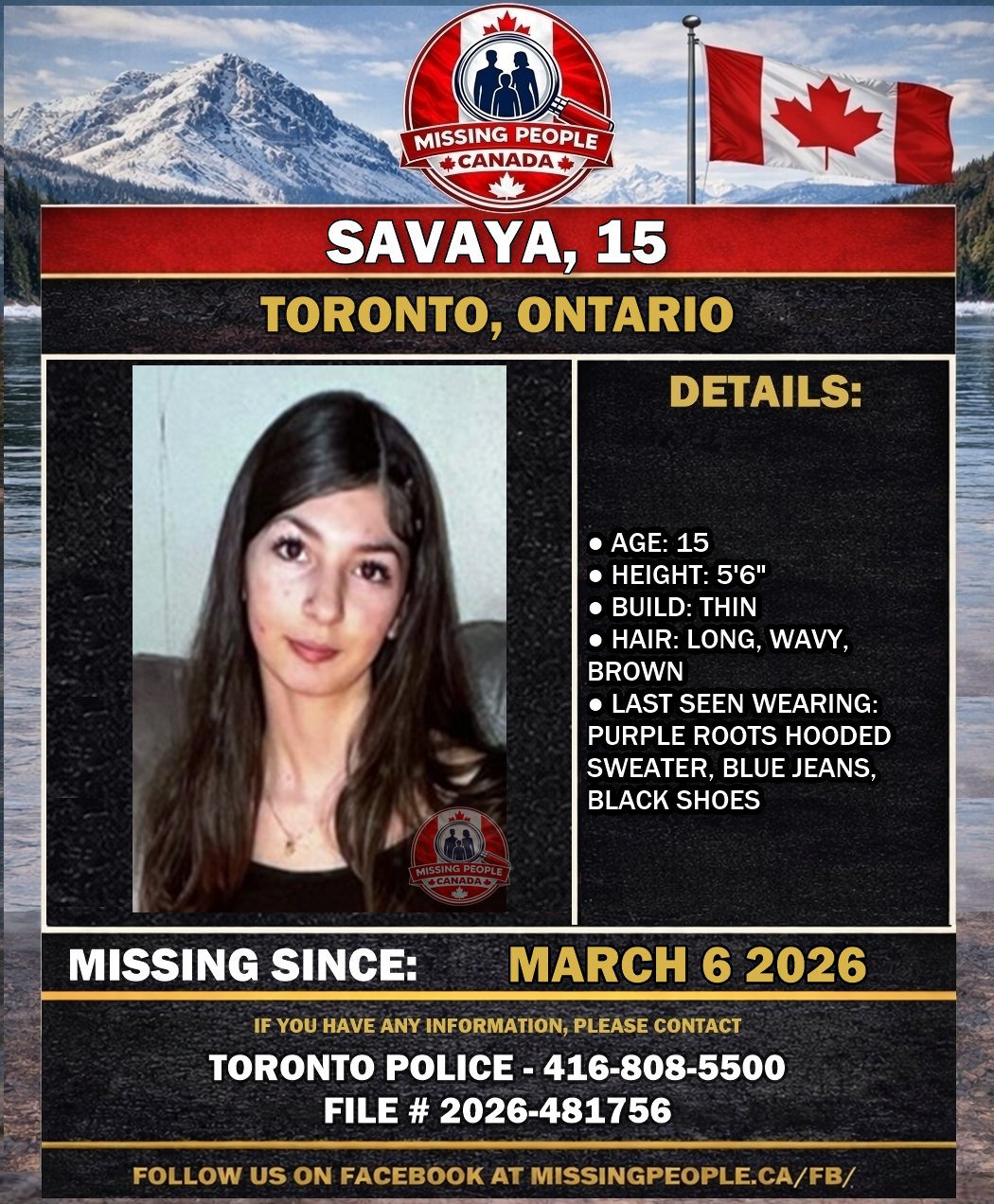 🚨 Missing Youth in Toronto, Ontario – Savaya, 15 – Last Seen March 6 2026