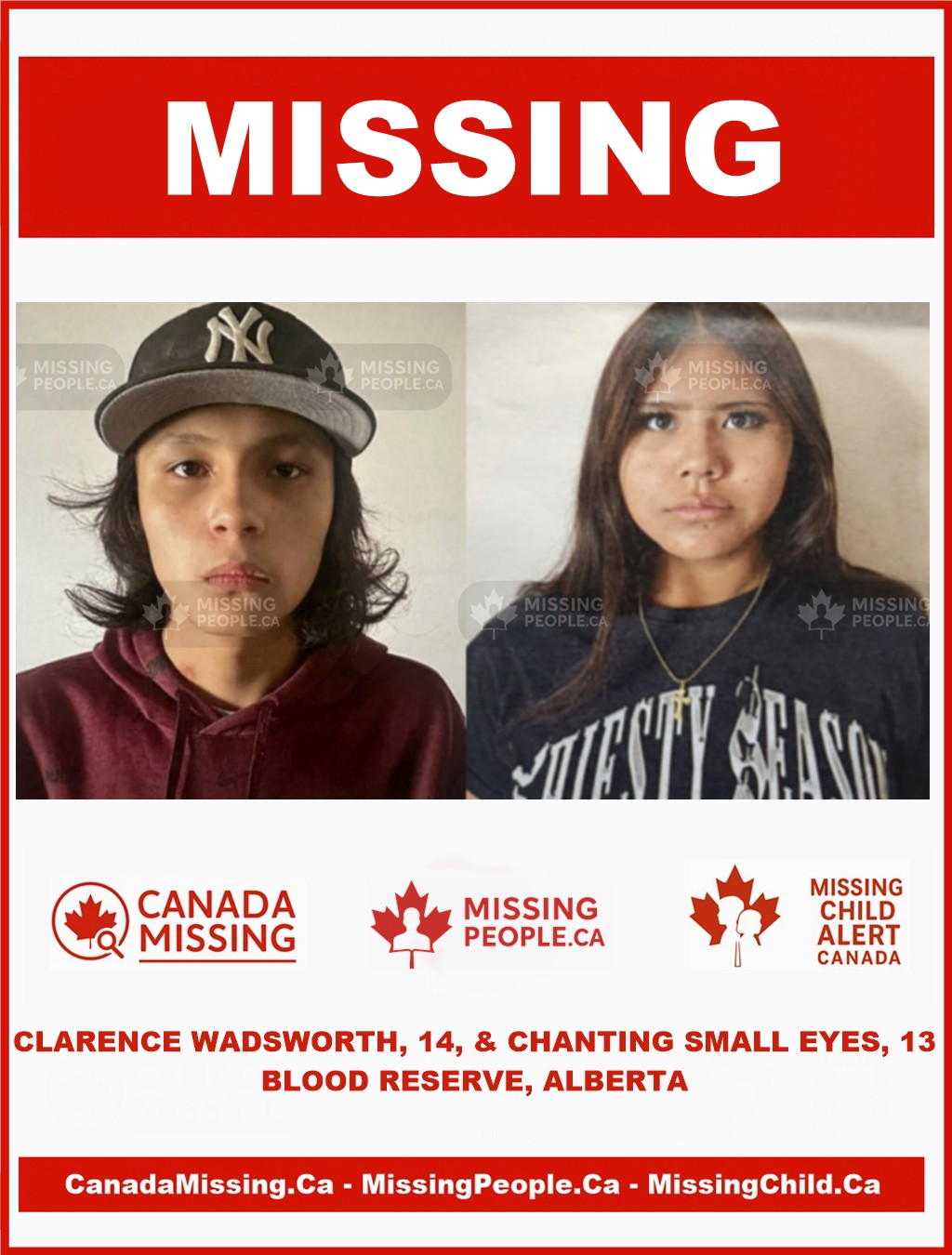 🚨 Missing Youths in Blood Reserve, Alberta – Clarence Wadsworth, 14, and Chanting Small Eyes, 13