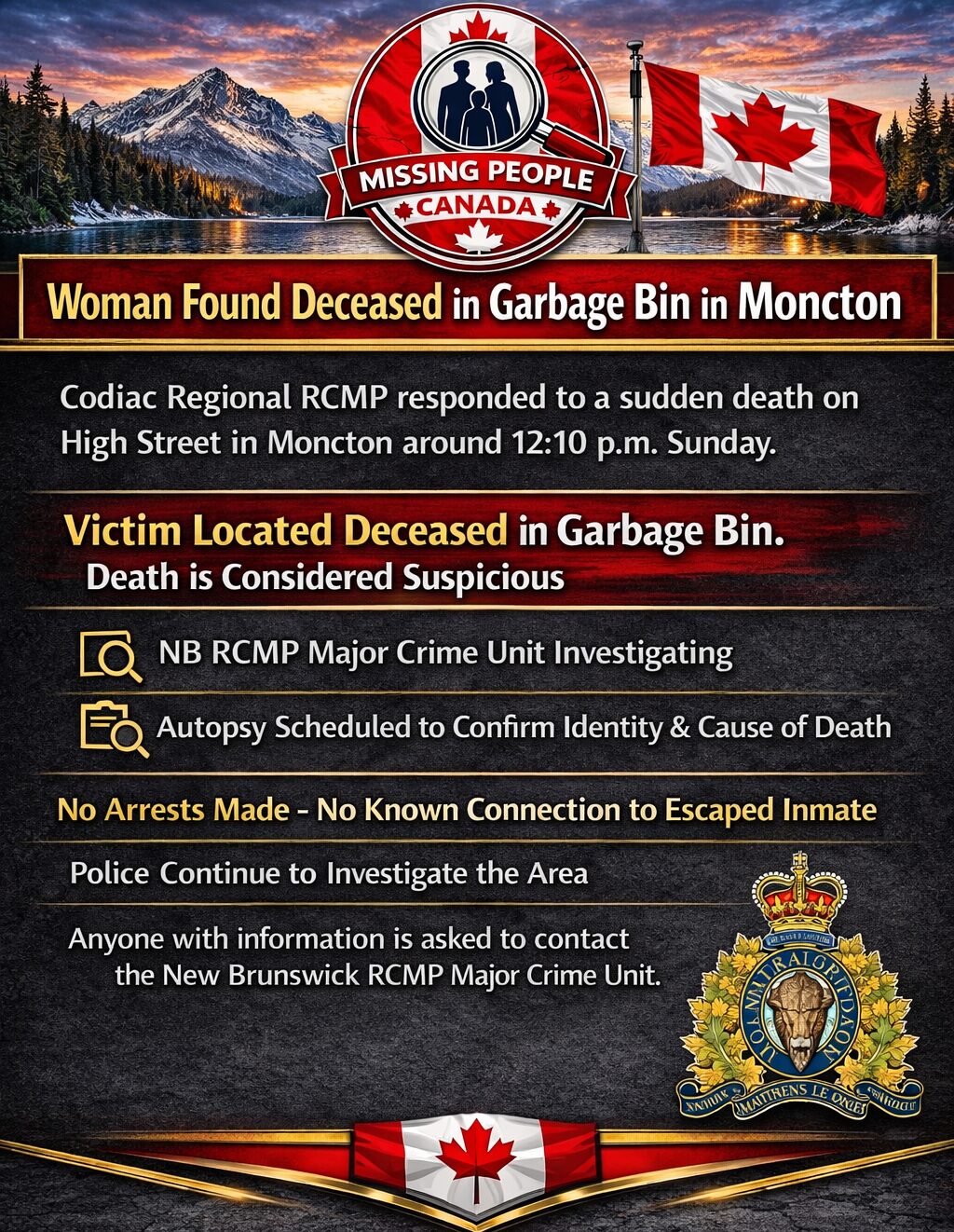 🚨 Moncton RCMP Investigating Suspicious Death – Woman Found in Garbage Bin on High Street