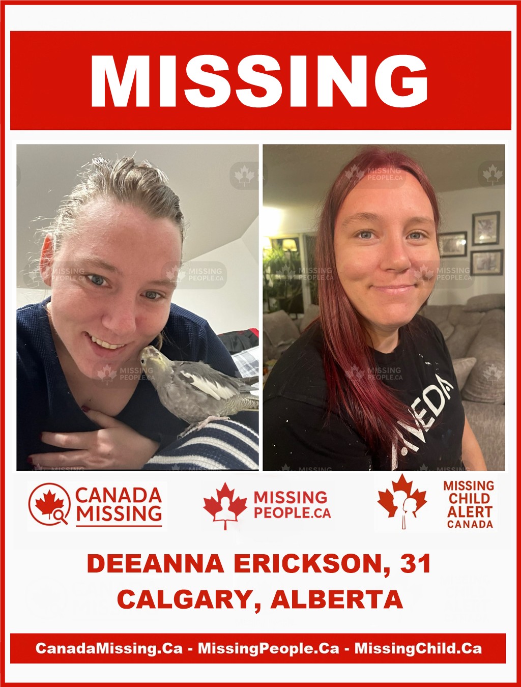 Anyone with information about Deeanna Erickson’s whereabouts is urged to contact the Calgary Police Service or provide anonymous information through Crime Stoppers.