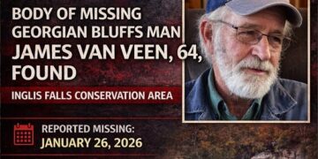 Articles/Notices BODY OF MISSING GEORGIAN BLUFFS MAN JAMES VAN VEEN, 64, FOUND AT INGLIS FALLS CONSERVATION AREA AFTER TWO-MONTH SEARCH 03/27/2026