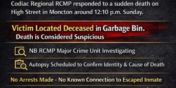 Articles/Notices MONCTON RCMP INVESTIGATING SUSPICIOUS DEATH – WOMAN FOUND IN GARBAGE BIN ON HIGH STREET IN MONCTON, NB 02/16/2026