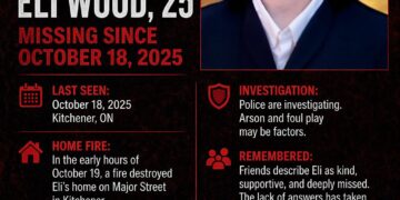 Articles/Notices QUESTIONS REMAIN SIX MONTHS AFTER DISAPPEARANCE OF ELI WOOD, 25, FOLLOWING KITCHENER HOUSE FIRE – LAST SEEN OCTOBER 18, 2025 04/24/2026