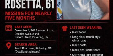 Articles/Notices DURHAM POLICE TO SEARCH PICKERING AREA IN ONGOING CASE OF MISSING VULNERABLE WOMAN ROSETTA, 61 – LAST SEEN DECEMBER 1, 2025 04/24/2026