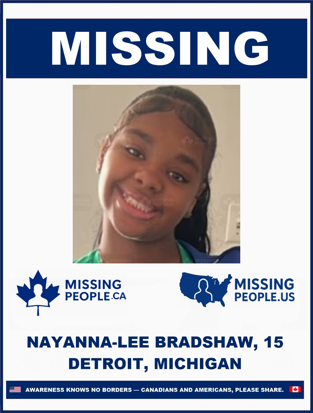 🚨 Missing Girl in Detroit, Michigan – Nayanna-Lee Bradshaw, 15 – Last Seen October 14, 2025