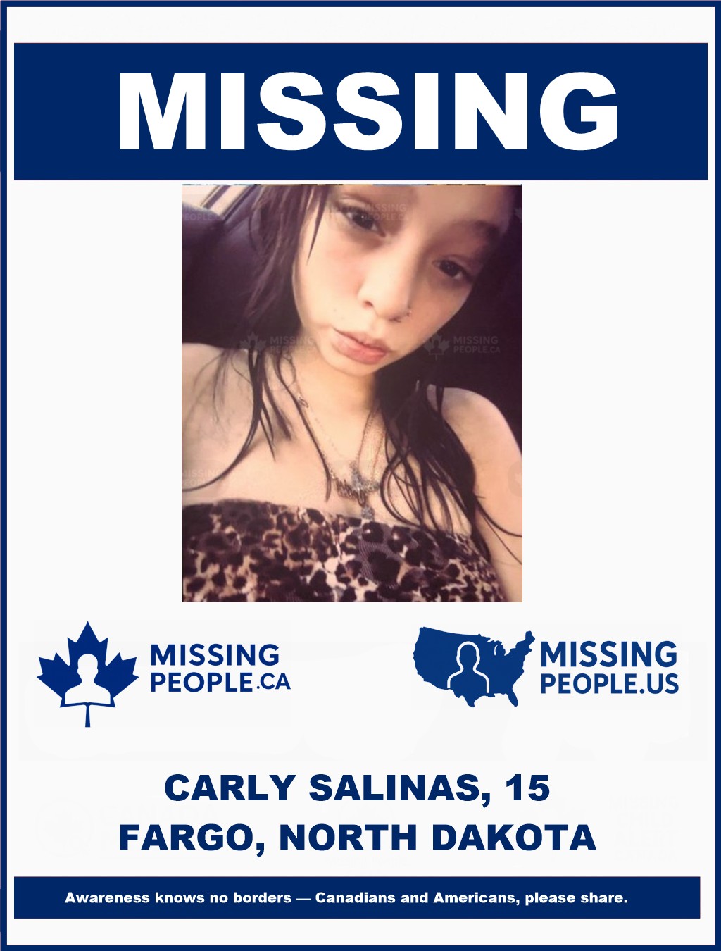 The Fargo Police Department is seeking the public’s assistance in locating 15-year-old Carly Salinas. She was last seen on Thursday, October 9, 2025, at approximately 12:30 p.m. in south Fargo, North Dakota.