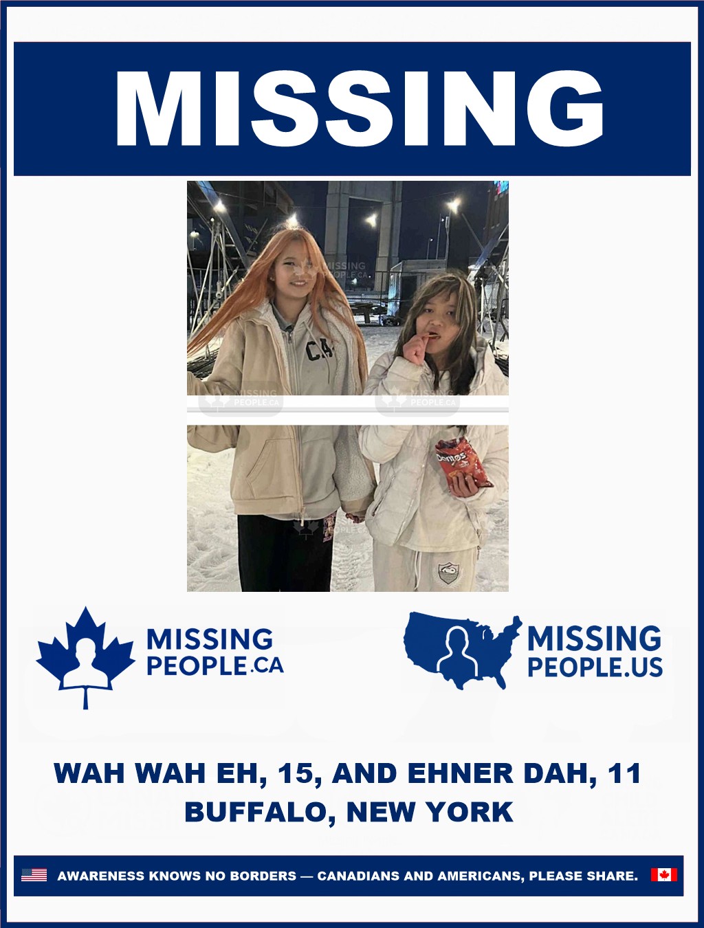 🚨 Missing Girls in Buffalo, New York – Wah Wah Eh, 15, and Ehner Dah, 11